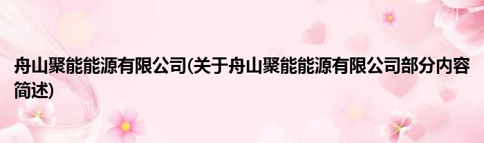 舟山聚能能源有限公司(关于舟山聚能能源有限公司部分内容简述)