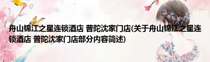 舟山锦江之星连锁酒店 普陀沈家门店(关于舟山锦江之星连锁酒店 普陀沈家门店部分内容简述)