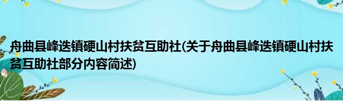 舟曲县峰迭镇硬山村扶贫互助社(关于舟曲县峰迭镇硬山村扶贫互助社部分内容简述)