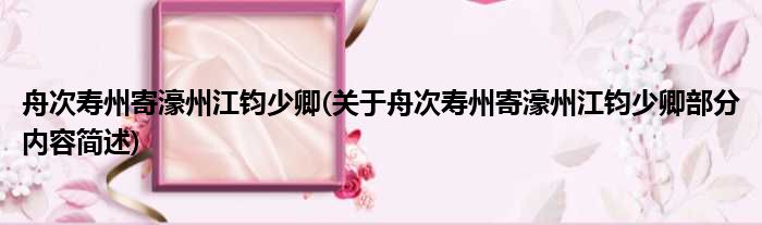 舟次寿州寄濠州江钧少卿(关于舟次寿州寄濠州江钧少卿部分内容简述)