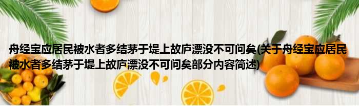 舟经宝应居民被水者多结茅于堤上故庐漂没不可问矣(关于舟经宝应居民被水者多结茅于堤上故庐漂没不可问矣部分内容简述)
