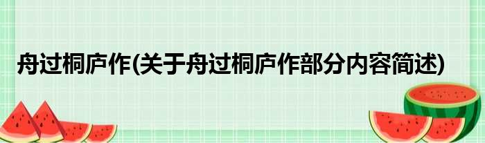 舟过桐庐作(关于舟过桐庐作部分内容简述)