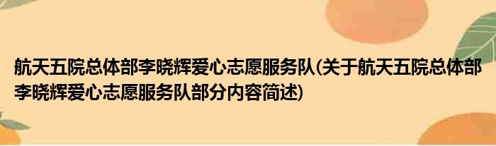 航天五院总体部李晓辉爱心志愿服务队(关于航天五院总体部李晓辉爱心志愿服务队部分内容简述)