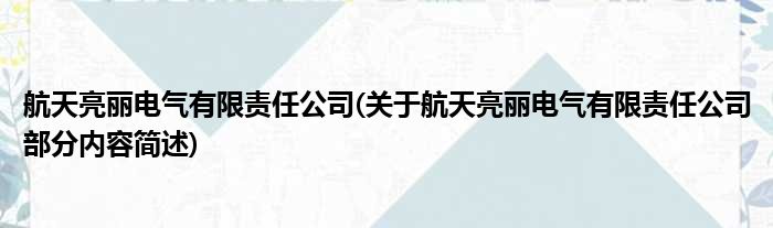 航天亮丽电气有限责任公司(关于航天亮丽电气有限责任公司部分内容简述)