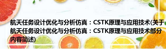 航天任务设计优化与分析仿真:CSTK原理与应用技术(关于航天任务设计优化与分析仿真:CSTK原理与应用技术部分内容简述)