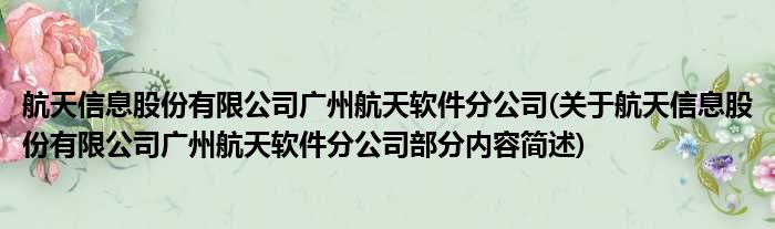 航天信息股份有限公司广州航天软件分公司(关于航天信息股份有限公司广州航天软件分公司部分内容简述)