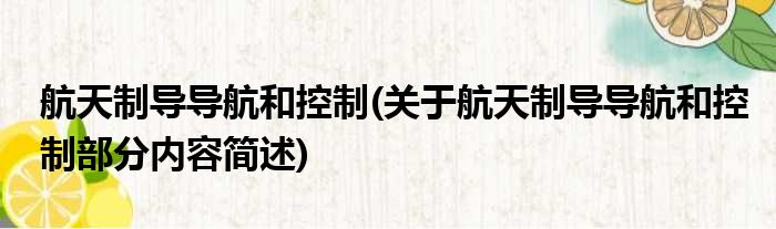 航天制导导航和控制(关于航天制导导航和控制部分内容简述)
