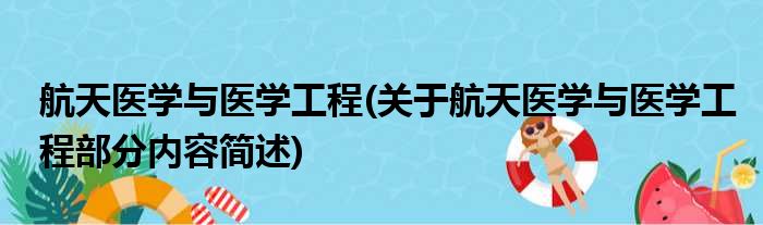 航天医学与医学工程(关于航天医学与医学工程部分内容简述)