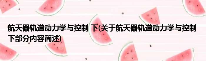 航天器轨道动力学与控制 下(关于航天器轨道动力学与控制 下部分内容简述)