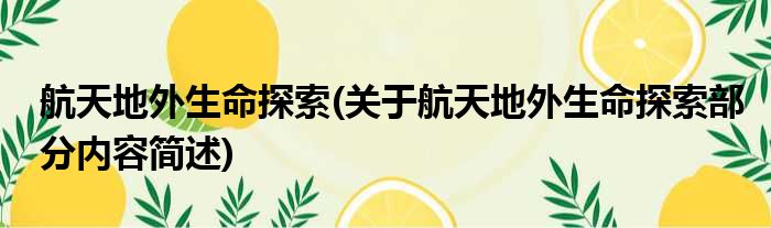 航天地外生命探索(关于航天地外生命探索部分内容简述)