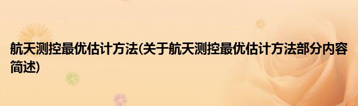 航天测控最优估计方法(关于航天测控最优估计方法部分内容简述)
