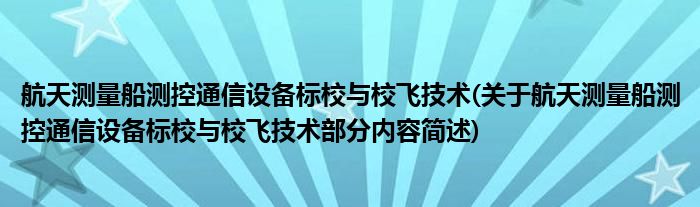 航天测量船测控通信设备标校与校飞技术(关于航天测量船测控通信设备标校与校飞技术部分内容简述)