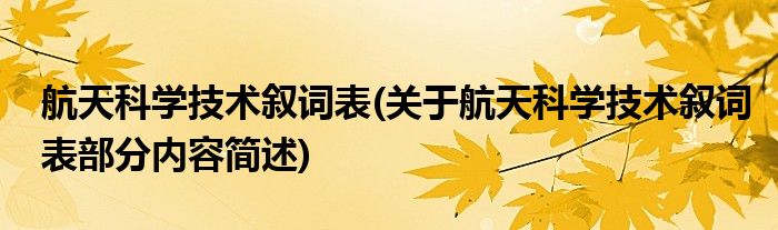 导读 大家好,今天小方来说说一篇关于航天科学技术叙词表,关于航天科学技术叙词表部分内容简述的文章,那么现在就为大家来简单介绍下,希望对各