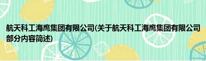 航天科工海鹰集团有限公司(关于航天科工海鹰集团有限公司部分内容简述)
