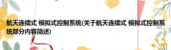 航天连续式 模拟式控制系统(关于航天连续式 模拟式控制系统部分内容简述)