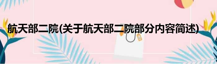 大家好,今天小方来说说一篇关于航天部二院,关于航天部二院部分内容简述的文章,那么现在就为大家来简单介绍下,希望对各位小伙伴们有所帮助。