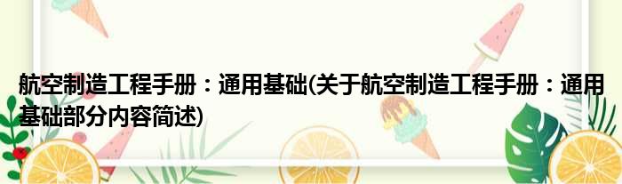 航空制造工程手册:通用基础(关于航空制造工程手册:通用基础部分内容简述)