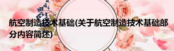 航空制造技术基础(关于航空制造技术基础部分内容简述)