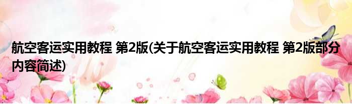 导读 大家好,今天小方来说说一篇关于航空客运实用教程 第2版,关于航空客运实用教程 第2版部分内容简述的文章,那么现在就为大家来简单介绍下