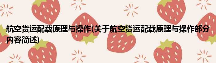 航空货运配载原理与操作(关于航空货运配载原理与操作部分内容简述)
