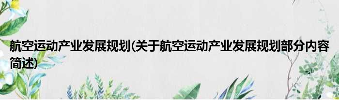 导读 大家好,今天小方来说说一篇关于航空运动产业发展规划,关于航空运动产业发展规划部分内容简述的文章,那么现在就为大家来简单介绍下,希望