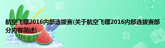 航空飞镖2016内部选拔赛(关于航空飞镖2016内部选拔赛部分内容简述)