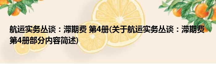 航运实务丛谈:滞期费 第4册(关于航运实务丛谈:滞期费 第4册部分内容简述)