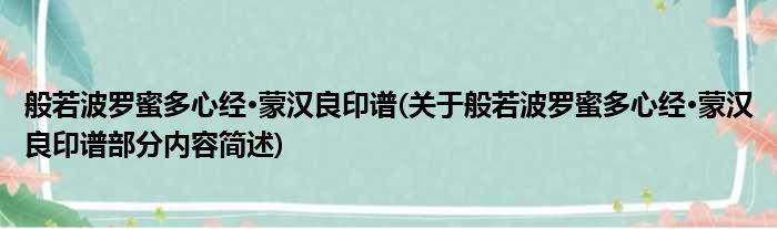 导读 大家好,今天小方来说说一篇关于般若波罗蜜多心经·蒙汉良印谱,关于般若波罗蜜多心经·蒙汉良印谱部分内容简述的文章,那么现在就为大家来