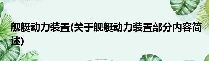 舰艇动力装置(关于舰艇动力装置部分内容简述)
