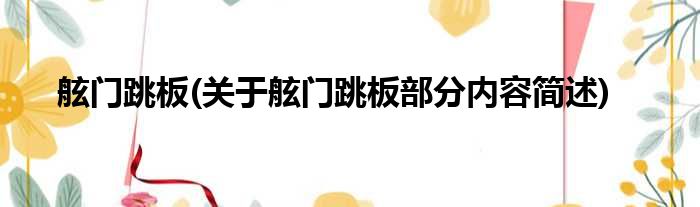 导读 大家好,今天小方来说说一篇关于舷门跳板,关于舷门跳板部分内容简述的文章,那么现在就为大家来简单介绍下,希望对各位小伙伴们有所帮助。