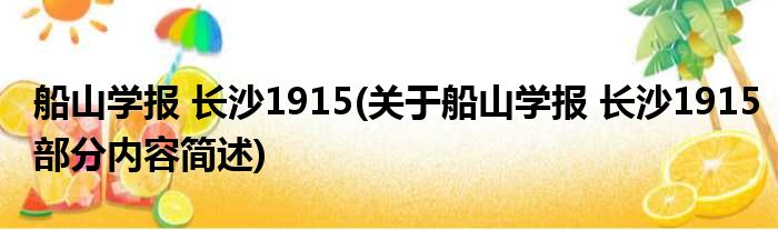 船山学报 长沙1915(关于船山学报 长沙1915部分内容简述)