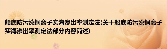 船底防污漆铜离子实海渗出率测定法(关于船底防污漆铜离子实海渗出率测定法部分内容简述)