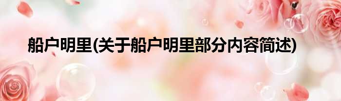 导读 大家好,今天小方来说说一篇关于船户明里,关于船户明里部分内容简述的文章,那么现在就为大家来简单介绍下,希望对各位小伙伴们有所帮助。