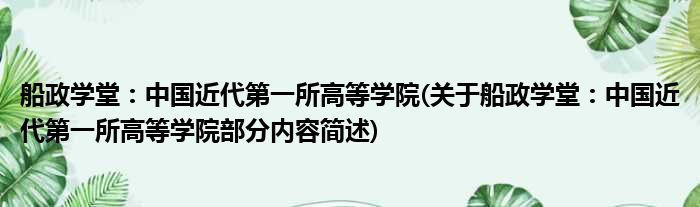 船政学堂:中国近代第一所高等学院(关于船政学堂:中国近代第一所高等学院部分内容简述)