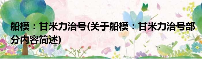 船模:甘米力治号(关于船模:甘米力治号部分内容简述)