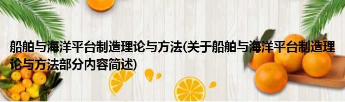 船舶与海洋平台制造理论与方法(关于船舶与海洋平台制造理论与方法部分内容简述)