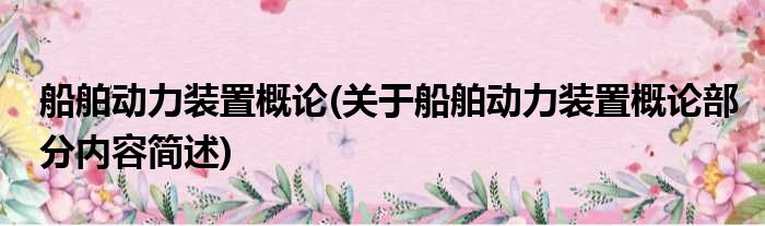 船舶动力装置概论(关于船舶动力装置概论部分内容简述)