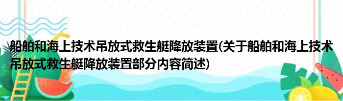 船舶和海上技术吊放式救生艇降放装置(关于船舶和海上技术吊放式救生艇降放装置部分内容简述)
