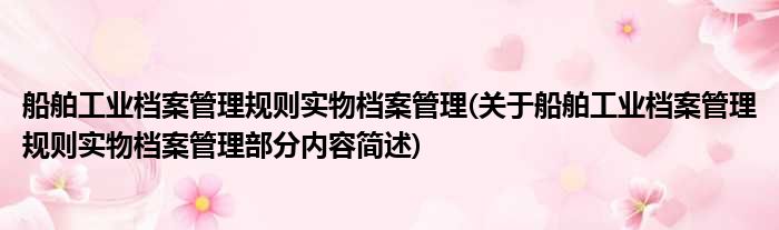 船舶工业档案管理规则实物档案管理(关于船舶工业档案管理规则实物档案管理部分内容简述)