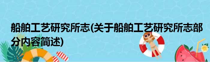 船舶工艺研究所志(关于船舶工艺研究所志部分内容简述)
