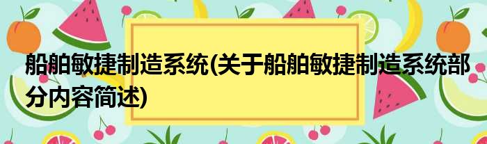 船舶敏捷制造系统(关于船舶敏捷制造系统部分内容简述)