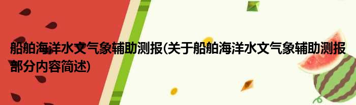 船舶海洋水文气象辅助测报(关于船舶海洋水文气象辅助测报部分内容简述)