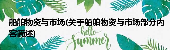 船舶物资与市场(关于船舶物资与市场部分内容简述)