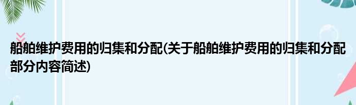 船舶维护费用的归集和分配(关于船舶维护费用的归集和分配部分内容简述)