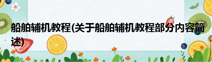 船舶辅机教程(关于船舶辅机教程部分内容简述)