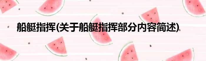 导读 大家好,今天小方来说说一篇关于船艇指挥,关于船艇指挥部分内容简述的文章,那么现在就为大家来简单介绍下,希望对各位小伙伴们有所帮助。