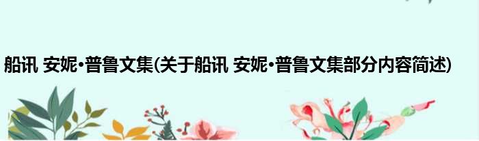 大家好,今天小方来说说一篇关于船讯 安妮·普鲁文集,关于船讯 安妮·普鲁文集部分内容简述的文章,那么现在就为大家来简单介绍下,希望对各位小伙伴们有所帮助。