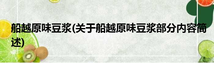 船越原味豆浆(关于船越原味豆浆部分内容简述)