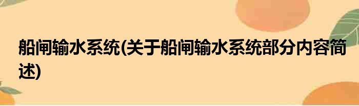 船闸输水系统(关于船闸输水系统部分内容简述)