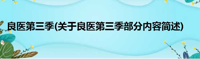 导读 大家好,今天小方来说说一篇关于良医第三季,关于良医第三季部分内容简述的文章,那么现在就为大家来简单介绍下,希望对各位小伙伴们有所帮